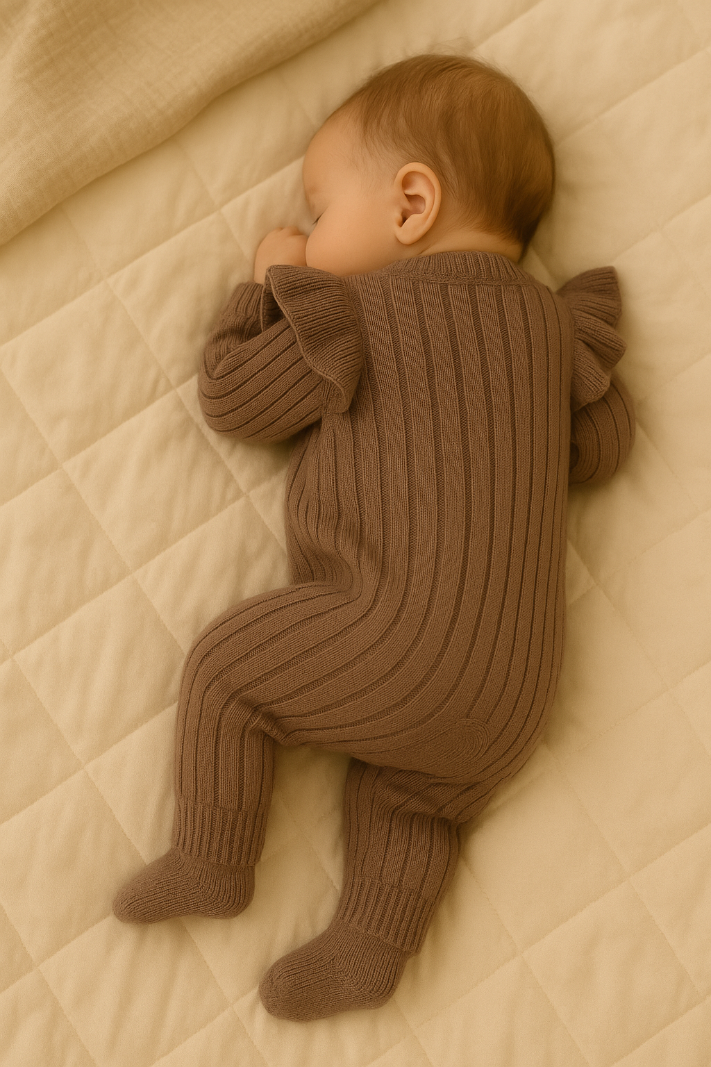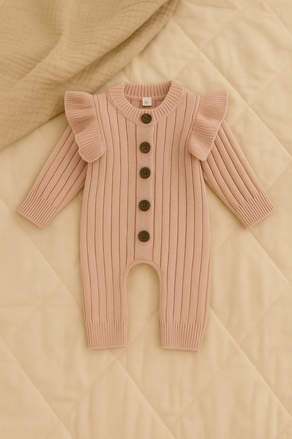 Our Knitted Ruffle Romper is designed to keep your little cub warm, cosy, and effortlessly stylish. With its soft ruffle shoulders and charming wooden buttons, this piece adds a sweet touch of vintage to everyday comfort. Perfect for chilly days, family outings, or simply curling up at home — it’s the kind of outfit that makes memories.