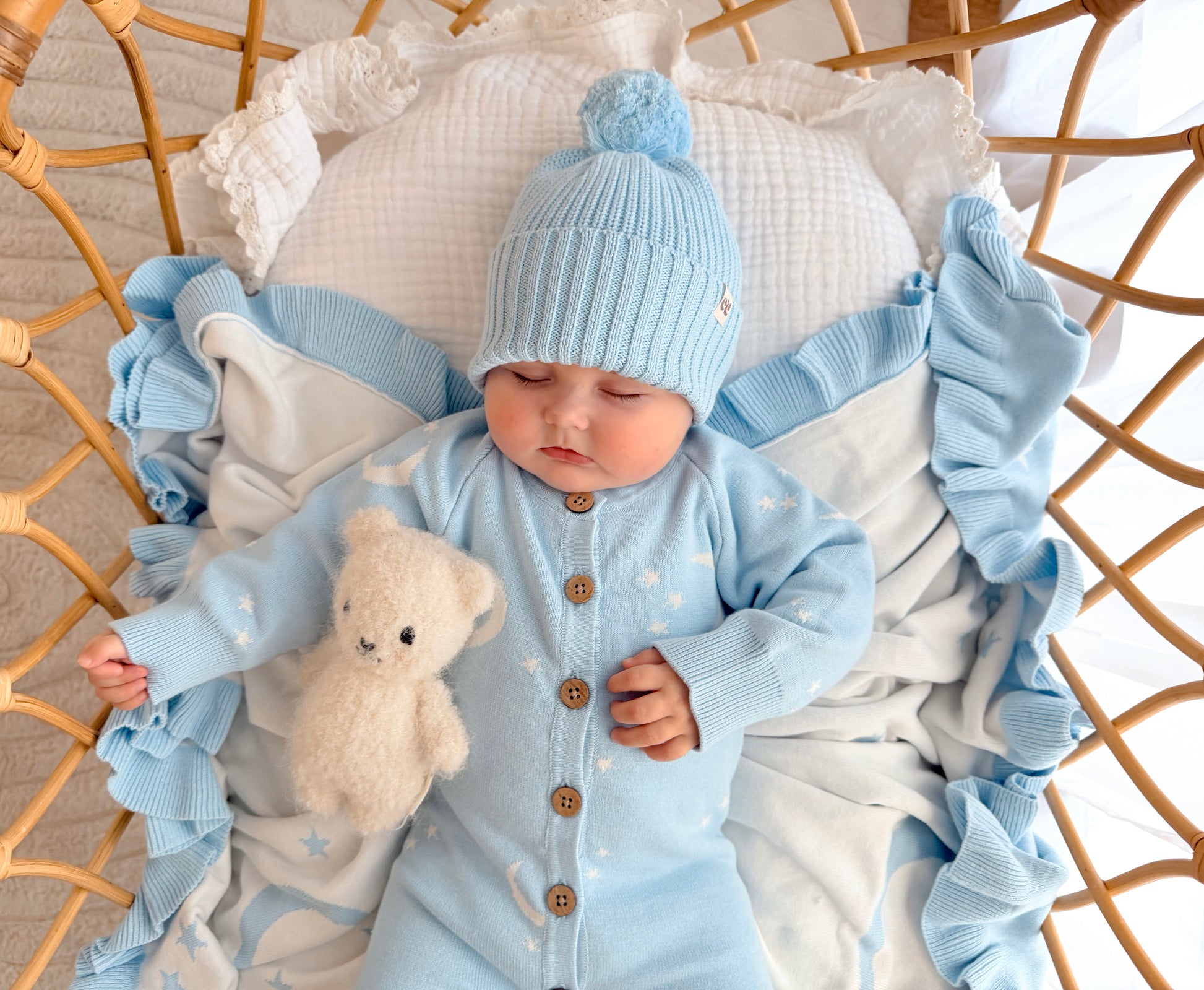 Wrap your little love in softness with our Dreamscape Reversible Blanket in Celeste Blue.